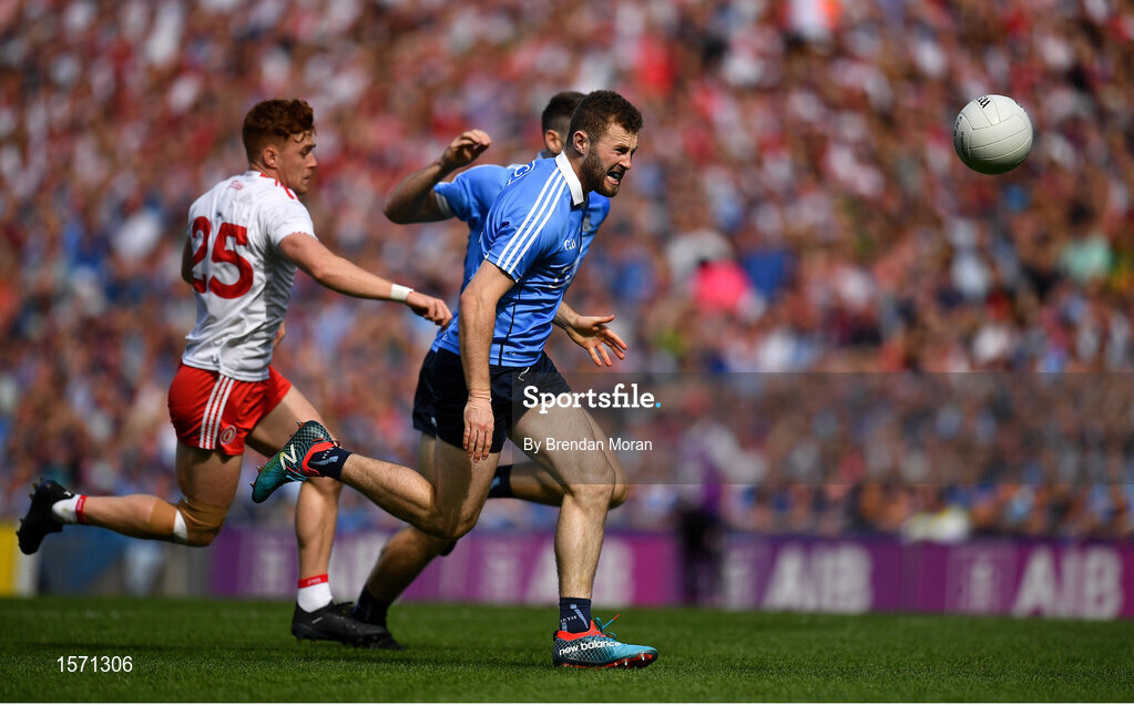 2 September 2018; Jack McCaffrey of Dublin in action against Conor Meyler of Tyrone during the GAA Football All-Ireland Senior Championship Final match between Dublin and Tyrone at Croke Park in Dublin. Photo by Brendan Moran/Sportsfile