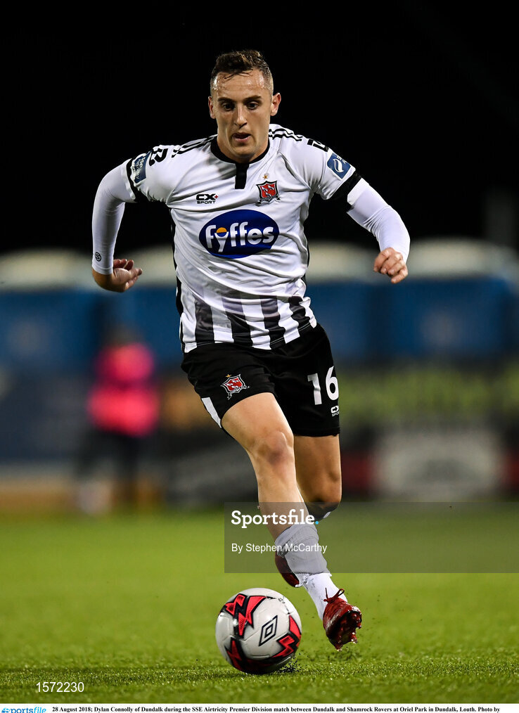 28 August 2018; Dylan Connolly of Dundalk during the SSE Airtricity Premier Division match between Dundalk and Shamrock Rovers at Oriel Park in Dundalk, Louth. Photo by Stephen McCarthy/Sportsfile