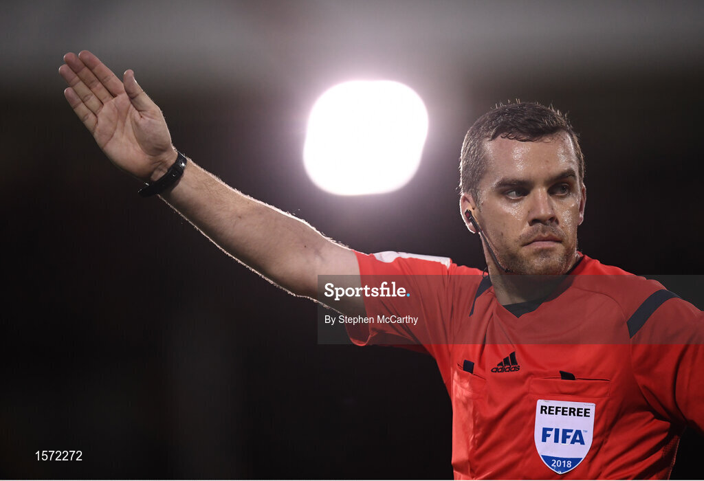 28 August 2018; Referee Robert Harvey during the SSE Airtricity Premier Division match between Dundalk and Shamrock Rovers at Oriel Park in Dundalk, Louth. Photo by Stephen McCarthy/Sportsfile