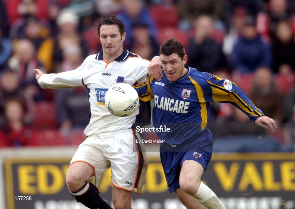 3 October 2004; Barry Molloy, Drogheda United, in action against Alan Murphy, Longford Town. FAI Carlsberg Cup Semi-Final, Longford Town v Drogheda United, Flancare Park, Longford. Picture credit; David Maher / SPORTSFILE