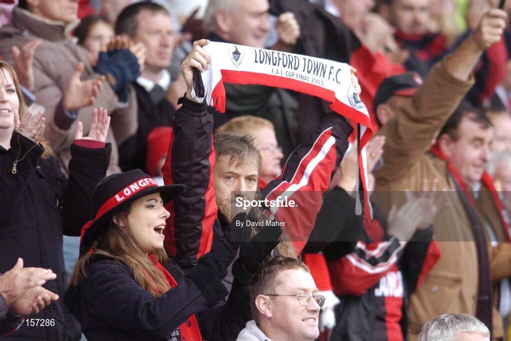 3 October 2004; Longford Town supporters cheer on their team before the start of the game. FAI Carlsberg Cup Semi-Final, Longford Town v Drogheda United, Flancare Park, Longford. Picture credit; David Maher / SPORTSFILE