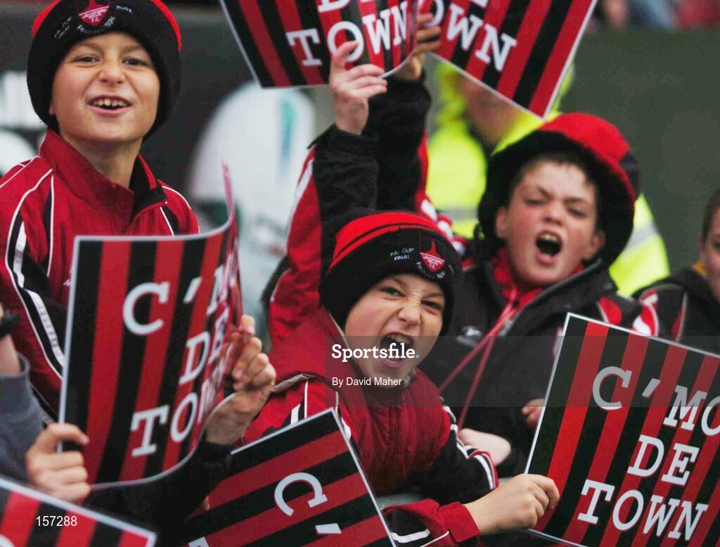 3 October 2004; Longford Town supporters cheer on their team before the start of the game. FAI Carlsberg Cup Semi-Final, Longford Town v Drogheda United, Flancare Park, Longford. Picture credit; David Maher / SPORTSFILE