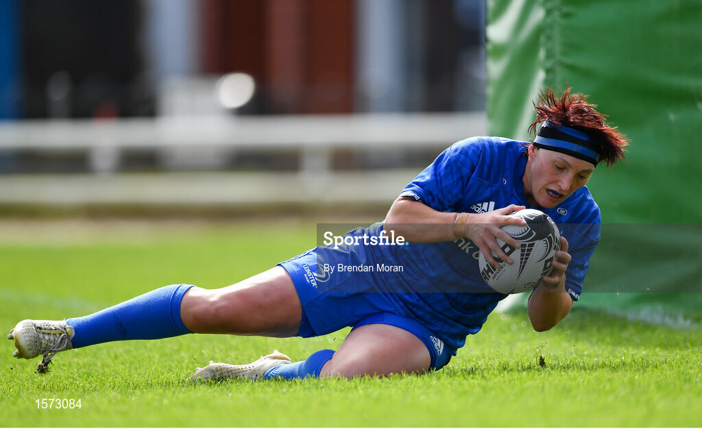 9 September 2018; Lindsey Peat of Leinster scores her and her side's second try during the 2018 Women’s Interprovincial Rugby Championship match between Connacht and Leinster at the Sportgrounds in Galway. Photo by Brendan Moran/Sportsfile