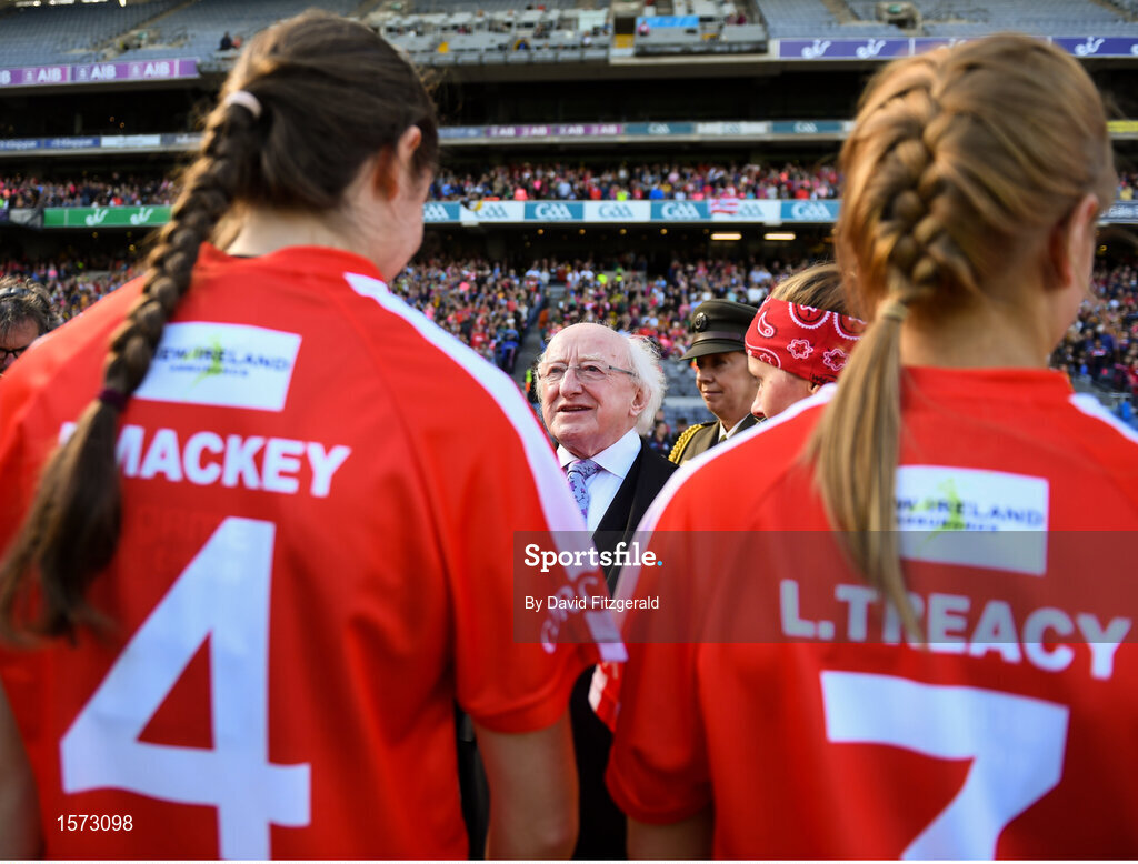 9 September 2018; President Michael D. Higgins meets Pamela Mackey of Cork prior to the Liberty Insurance All-Ireland Senior Camogie Championship Final match between Cork and Kilkenny at Croke Park in Dublin. Photo by David Fitzgerald/Sportsfile
