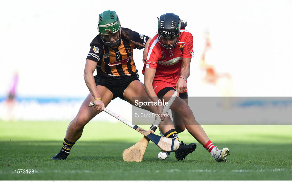 9 September 2018; Julia White of Cork in action against Colette Dormer of Kilkenny during the Liberty Insurance All-Ireland Senior Camogie Championship Final match between Cork and Kilkenny at Croke Park in Dublin. Photo by David Fitzgerald/Sportsfile