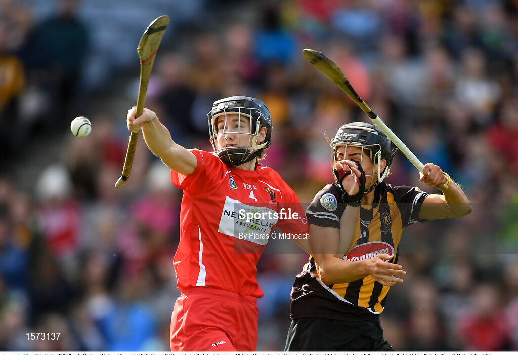 9 September 2018; Pamela Mackey of Cork in action against Katie Power of Kilkenny during the Liberty Insurance All-Ireland Senior Camogie Championship Final match between Cork and Kilkenny at Croke Park in Dublin. Photo by Piaras Ó Mídheach/Sportsfile