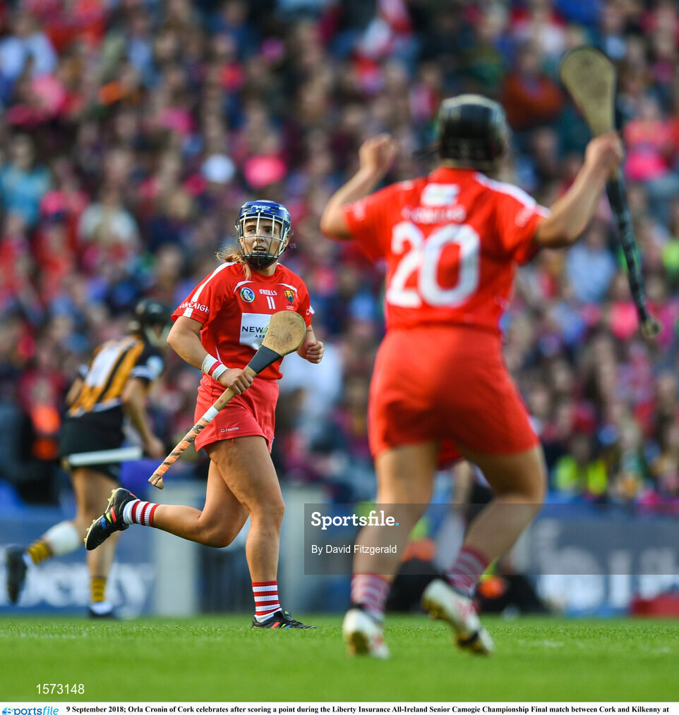 9 September 2018; Orla Cronin of Cork celebrates after scoring a point during the Liberty Insurance All-Ireland Senior Camogie Championship Final match between Cork and Kilkenny at Croke Park in Dublin. Photo by David Fitzgerald/Sportsfile