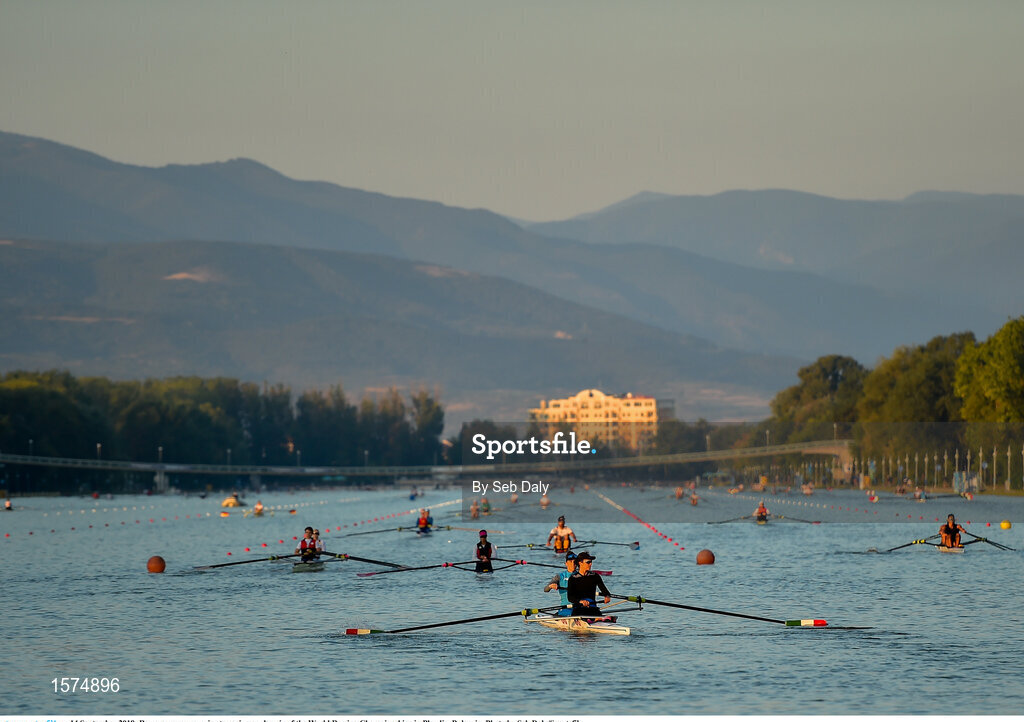 14 September 2018; Rowers warm-up prior to racing on day six of the World Rowing Championships in Plovdiv, Bulgaria. Photo by Seb Daly/Sportsfile