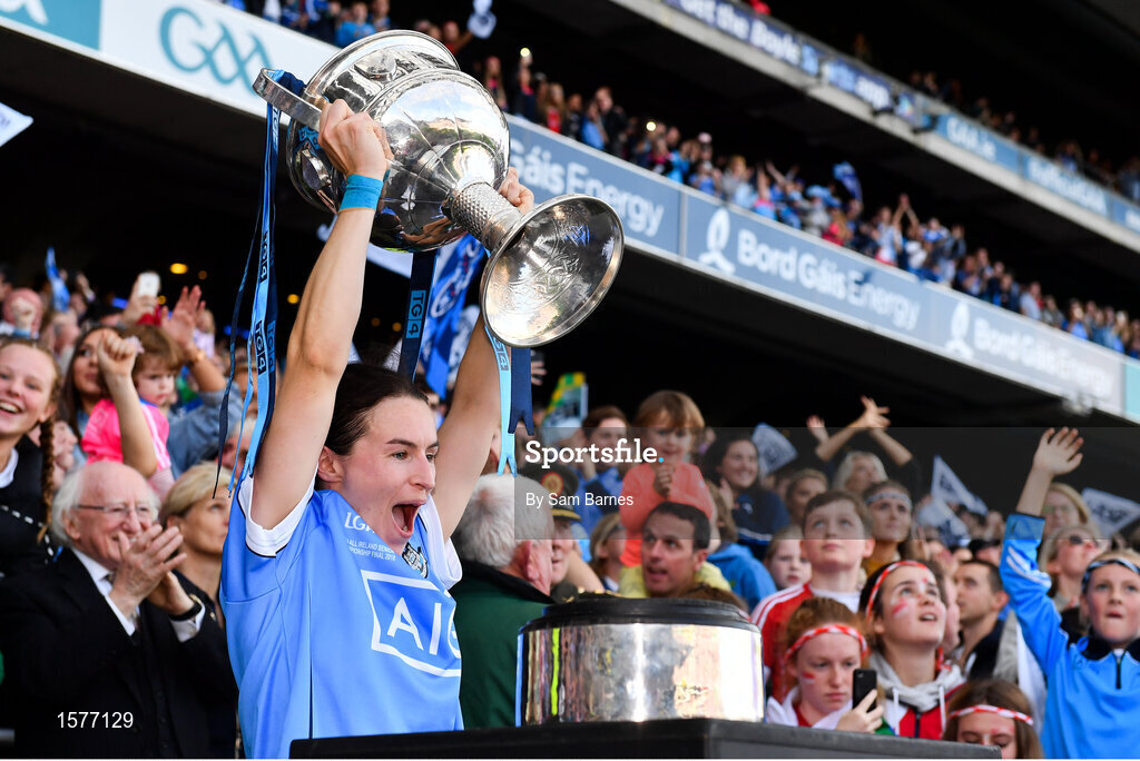 16 September 2018; Dublin captain Sinead Aherne lifts the Brendan Martin Cup after the TG4 All-Ireland Ladies Football Senior Championship Final match between Cork and Dublin at Croke Park, Dublin. Photo by Sam Barnes/Sportsfile