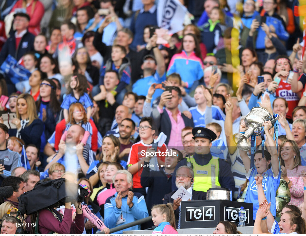 16 September 2018; Dublin captain Sinead Aherne lifts the Brendan Martin Cup after the TG4 All-Ireland Ladies Football Senior Championship Final match between Cork and Dublin at Croke Park, Dublin. Photo by Eóin Noonan/Sportsfile