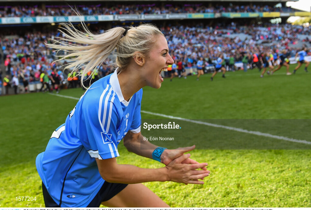 16 September 2018; Nicole Owens of Dublin celebrates following the TG4 All-Ireland Ladies Football Senior Championship Final match between Cork and Dublin at Croke Park, Dublin. Photo by Eóin Noonan/Sportsfile