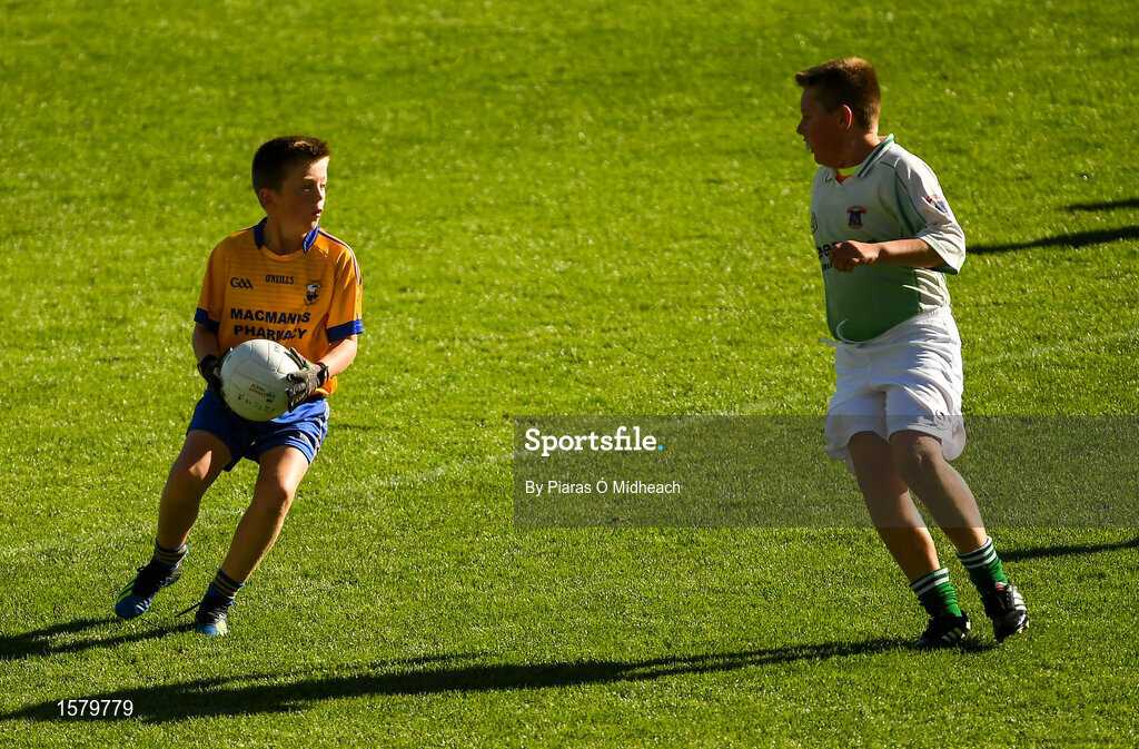 23 September 2018; Jack Attard, of Glencar Manorhamilton, Co Leitrim, left, in action against Jonathan Groenewald of St Barry's, Co Roscommon, during the Littlewoods Ireland Connacht Provincial Days Go Games in Croke Park. This year over 6,000 boys and girls aged between six and eleven represented their clubs in a series of mini blitzes and – just like their heroes – got to play in Croke Park. For exclusive content and behind the scenes action follow Littlewoods Ireland on Facebook, Instagram, Twitter and https://blog.littlewoodsireland.ie/ Photo by Piaras Ó Mídheach/Sportsfile
