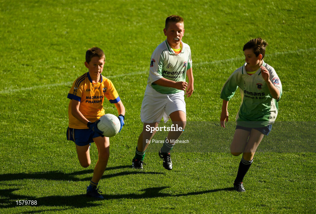 23 September 2018; Luke Farrell, of Glencar Manorhamilton, Co Leitrim, in action against Jonathan Groenewald and James Fallon, right, of St Barry's, Co Roscommon, during the Littlewoods Ireland Connacht Provincial Days Go Games in Croke Park. This year over 6,000 boys and girls aged between six and eleven represented their clubs in a series of mini blitzes and – just like their heroes – got to play in Croke Park. For exclusive content and behind the scenes action follow Littlewoods Ireland on Facebook, Instagram, Twitter and https://blog.littlewoodsireland.ie/ Photo by Piaras Ó Mídheach/Sportsfile