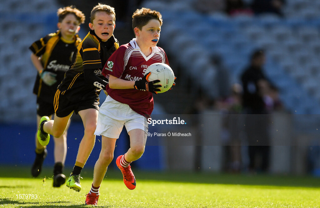23 September 2018; Aaron Coleman of Shamrock Gaels, Co Sligo, in action against Louis Markham of Ballinasloe, Co Galway, during the Littlewoods Ireland Connacht Provincial Days Go Games in Croke Park. This year over 6,000 boys and girls aged between six and eleven represented their clubs in a series of mini blitzes and – just like their heroes – got to play in Croke Park. For exclusive content and behind the scenes action follow Littlewoods Ireland on Facebook, Instagram, Twitter and https://blog.littlewoodsireland.ie/ Photo by Piaras Ó Mídheach/Sportsfile