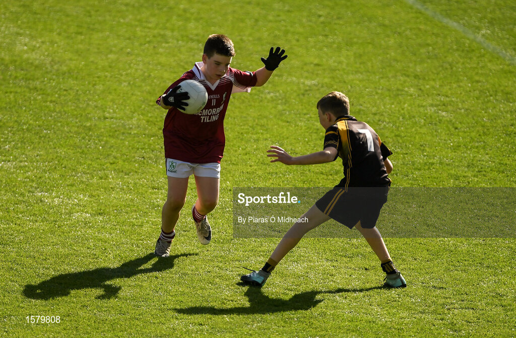 23 September 2018; Matthew Potter of Shamrock Gaels, Co Sligo, in action against Gearóid Markham of Ballinasloe, Co Galway, during the Littlewoods Ireland Connacht Provincial Days Go Games in Croke Park. This year over 6,000 boys and girls aged between six and eleven represented their clubs in a series of mini blitzes and – just like their heroes – got to play in Croke Park. For exclusive content and behind the scenes action follow Littlewoods Ireland on Facebook, Instagram, Twitter and https://blog.littlewoodsireland.ie/ Photo by Piaras Ó Mídheach/Sportsfile