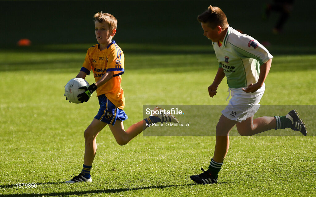 23 September 2018; Colm Rooney of Glencar Manorhamilton, Co Leitrim, in action against Jonathan Groenewald of St Barry's, Co Roscommon, during the Littlewoods Ireland Connacht Provincial Days Go Games in Croke Park. This year over 6,000 boys and girls aged between six and eleven represented their clubs in a series of mini blitzes and – just like their heroes – got to play in Croke Park. For exclusive content and behind the scenes action follow Littlewoods Ireland on Facebook, Instagram, Twitter and https://blog.littlewoodsireland.ie/ Photo by Piaras Ó Mídheach/Sportsfile