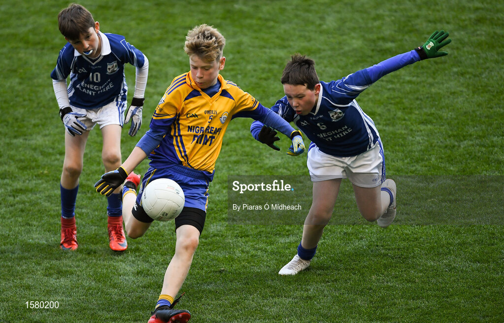 23 September 2018; Billy Ruane of Knockmore, Co Mayo, in action against Conor Loftus, left, and Gavin Mullaney of Breaffy, Co Mayo, at the Littlewoods Ireland Connacht Provincial Days Go Games in Croke Park. This year over 6,000 boys and girls aged between six and eleven represented their clubs in a series of mini blitzes and – just like their heroes – got to play in Croke Park. For exclusive content and behind the scenes action follow Littlewoods Ireland on Facebook, Instagram, Twitter and https://blog.littlewoodsireland.ie/ Photo by Piaras Ó Mídheach/Sportsfile