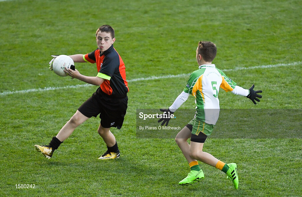 23 September 2018; Action from Claregalway, Co Galway, and Naomh Padraig, Co Mayo, during the Littlewoods Ireland Connacht Provincial Days Go Games in Croke Park. This year over 6,000 boys and girls aged between six and eleven represented their clubs in a series of mini blitzes and – just like their heroes – got to play in Croke Park. For exclusive content and behind the scenes action follow Littlewoods Ireland on Facebook, Instagram, Twitter and https://blog.littlewoodsireland.ie/ Photo by Piaras Ó Mídheach/Sportsfile