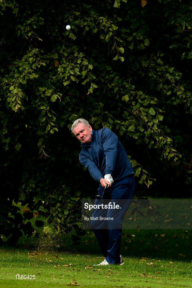 24 September 2018; Former Republic of Ireland player Ray Houghton pitches onto the 10th green during the Goodbody Jackie's Army Squad Reunion at The K Club, Straffan, in Co. Kildare. Photo by Matt Browne/Sportsfile
