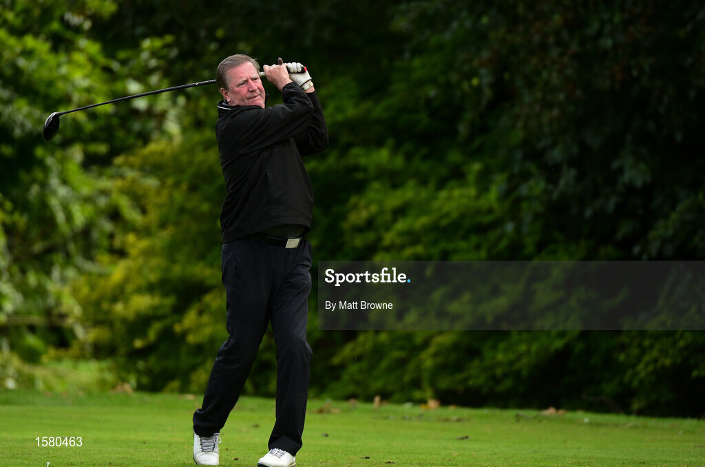 24 September 2018; Former Republic of Ireland player Ronnie Whelan watches his tee-shot from the 11th tee-box during the Goodbody Jackie's Army Squad Reunion at The K Club, Straffan, in Co. Kildare. Photo by Matt Browne/Sportsfile
