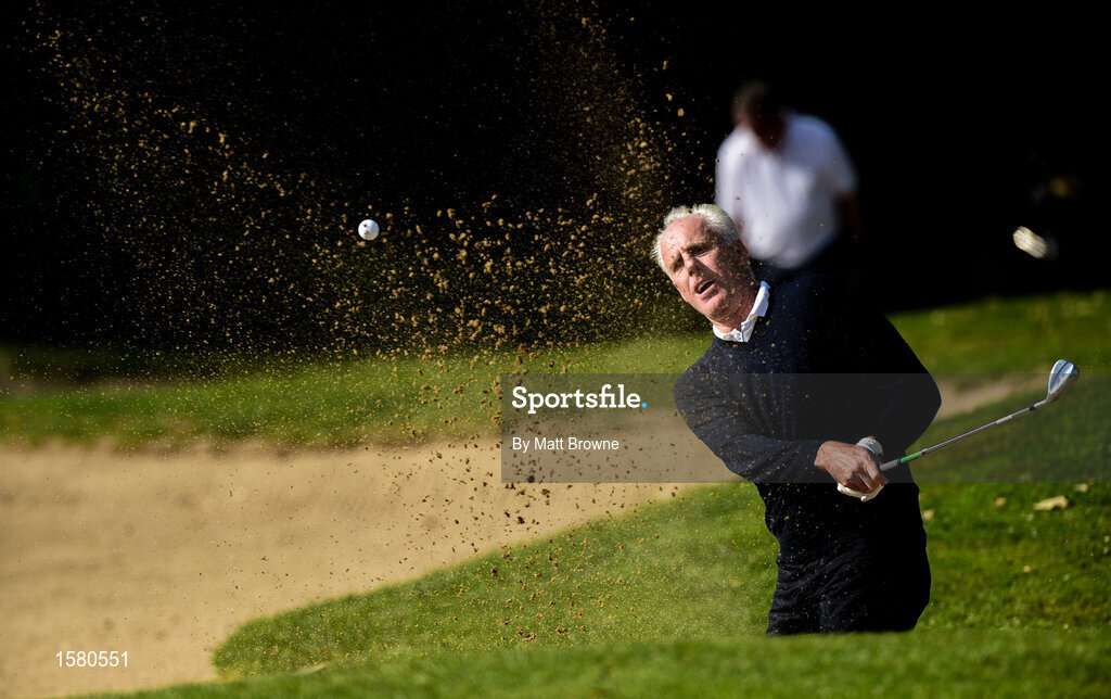 24 September 2018; Former Republic of Ireland manager Mick McCarthy plays from a bunker onto the 10th green during the Goodbody Jackie's Army Squad Reunion at The K Club, Straffan, in Co. Kildare. Photo by Matt Browne/Sportsfile