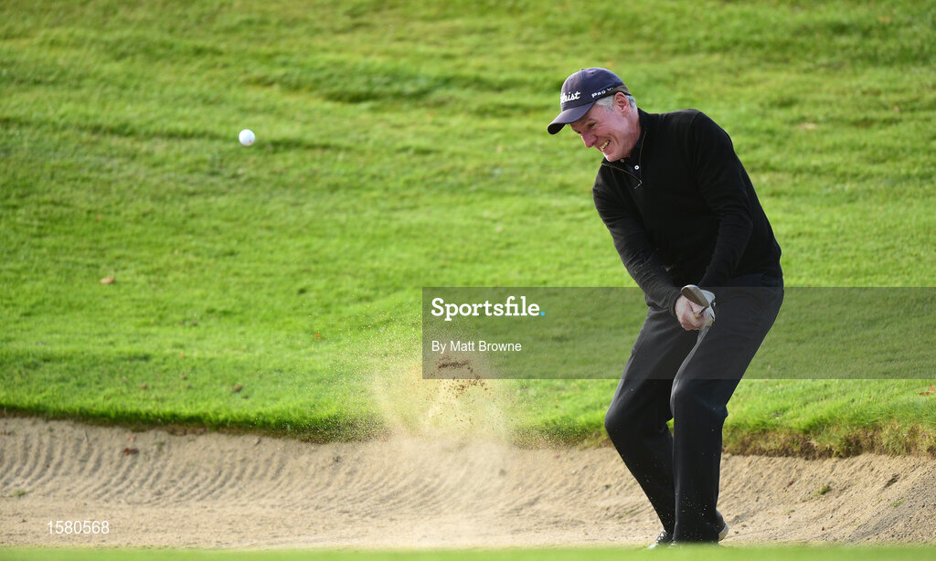 24 September 2018; Former Republic of Ireland international Frank Stapleton plays from a bunker onto the 8th green during the Goodbody Jackie's Army Squad Reunion at The K Club, Straffan, in Co. Kildare. Photo by Matt Browne/Sportsfile