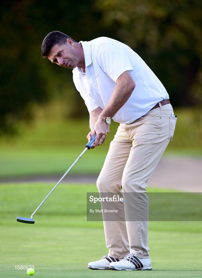 24 September 2018; Former Republic of Ireland international Niall Quinn watches his putt on the 10th green during the Goodbody Jackie's Army Squad Reunion at The K Club, Straffan, in Co. Kildare. Photo by Matt Browne/Sportsfile