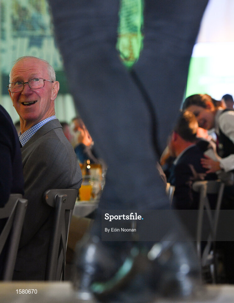 24 September 2018; Former Republic of Ireland manager Jack Charlton watches as a tap dancer performs during the Goodbody Jackie's Army Squad Reunion at The K Club, Straffan, in Co. Kildare. Photo by Eóin Noonan/Sportsfile