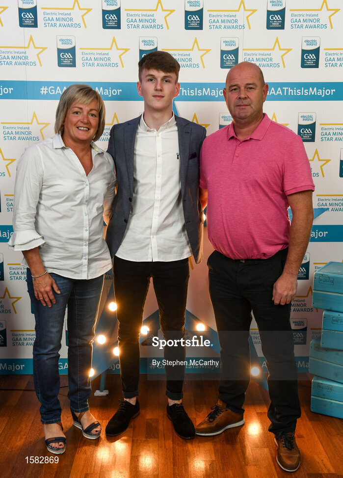 29 September 2018; Tiarnan Woods of Drumsurn, Derry, with his parents Martina and Rory on their arrival at the 2018 Electric Ireland Minor Star Awards. The Hurling/Football Team of the Year was selected by an expert panel of GAA legends including Ollie Canning, Sean Cavanagh, Michael Fennelly and Daniel Goulding. Sponsors of the GAA Minor Championships, Electric Ireland today recognised the talent and dedication of 15 Minor football players, and 15 Minor hurling players at the second annual Electric Ireland Minor Star Awards at Croke Park. #GAAThisIsMajor Photo by Stephen McCarthy/Sportsfile