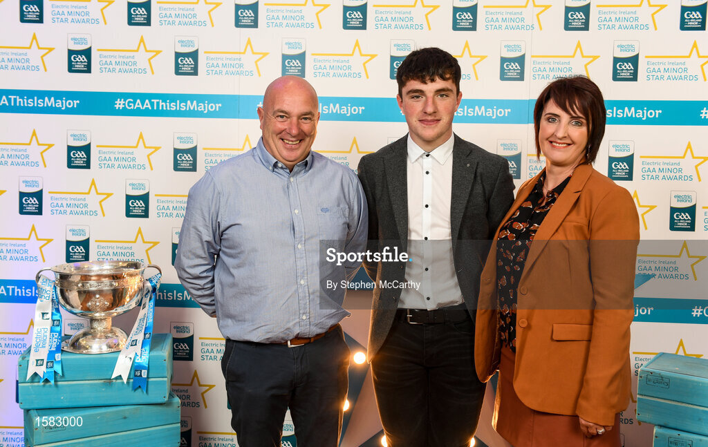29 September 2018; Darragh Rahilly of Rathmore, Kerry, with parents Donal and Shiela on their arrival at the 2018 Electric Ireland Minor Star Awards. The Hurling/Football Team of the Year was selected by an expert panel of GAA legends including Ollie Canning, Sean Cavanagh, Michael Fennelly and Daniel Goulding. Sponsors of the GAA Minor Championships, Electric Ireland today recognised the talent and dedication of 15 Minor football players, and 15 Minor hurling players at the second annual Electric Ireland Minor Star Awards at Croke Park. #GAAThisIsMajor Photo by Stephen McCarthy/Sportsfile