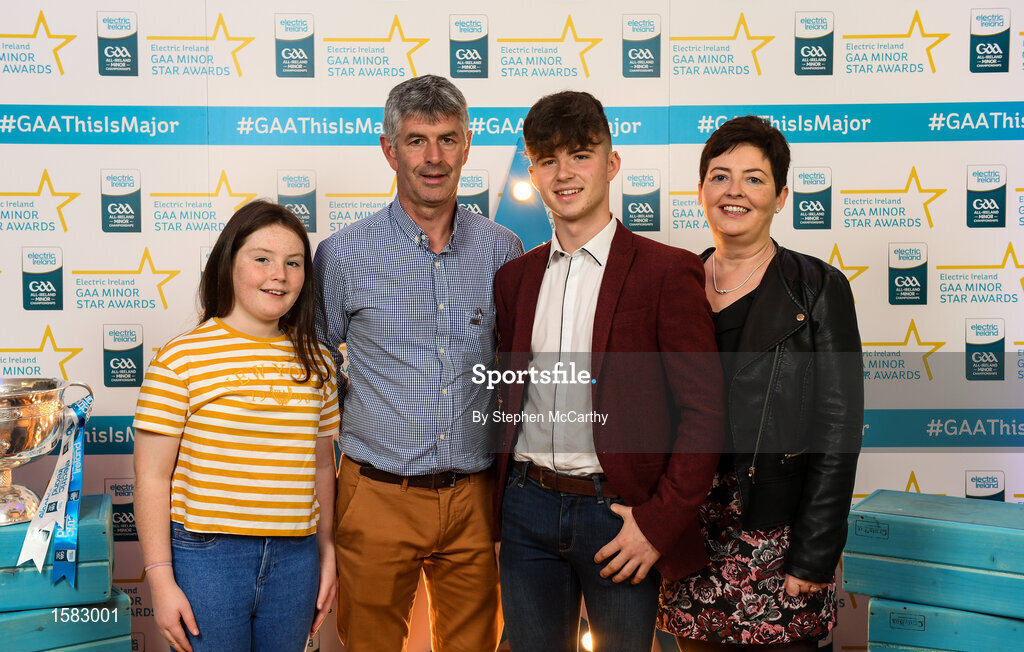29 September 2018; Owen Fitzgerald of Gneeveguilla, Kerry, with parents Donie and Helen and sister Ava on their arrival at the 2018 Electric Ireland Minor Star Awards. The Hurling/Football Team of the Year was selected by an expert panel of GAA legends including Ollie Canning, Sean Cavanagh, Michael Fennelly and Daniel Goulding. Sponsors of the GAA Minor Championships, Electric Ireland today recognised the talent and dedication of 15 Minor football players, and 15 Minor hurling players at the second annual Electric Ireland Minor Star Awards at Croke Park. #GAAThisIsMajor Photo by Stephen McCarthy/Sportsfile