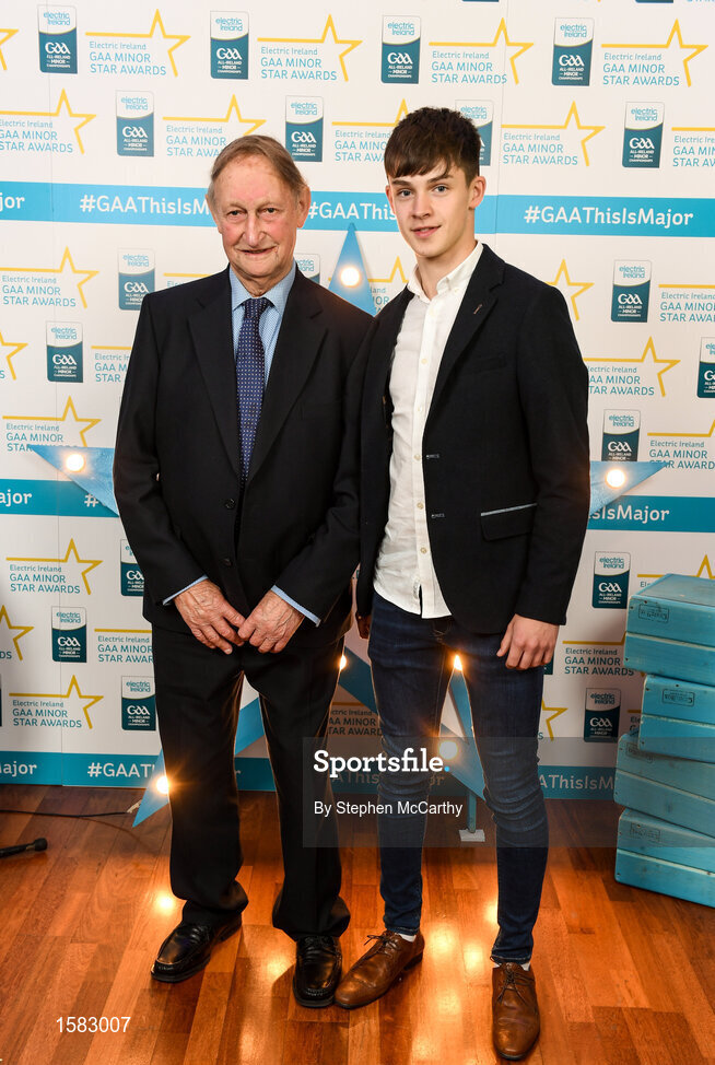 29 September 2018; Seán Phelan of Nenagh Eire OG, Tipperary, accompanied by Richard Phelan on their arrival at the 2018 Electric Ireland Minor Star Awards. The Hurling/Football Team of the Year was selected by an expert panel of GAA legends including Ollie Canning, Sean Cavanagh, Michael Fennelly and Daniel Goulding. Sponsors of the GAA Minor Championships, Electric Ireland today recognised the talent and dedication of 15 Minor football players, and 15 Minor hurling players at the second annual Electric Ireland Minor Star Awards at Croke Park. #GAAThisIsMajor Photo by Stephen McCarthy/Sportsfile