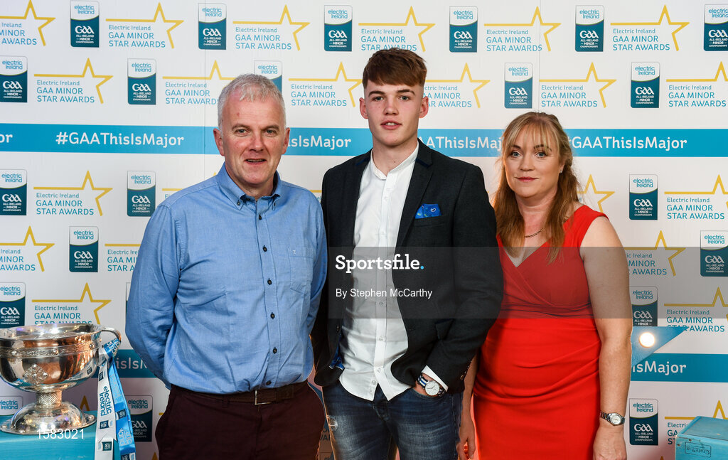 29 September 2018; Conor Whelan of CJ Kickhams, Tipperary, with his father Maurice and mother Ber on their arrival at the 2018 Electric Ireland Minor Star Awards. The Hurling/Football Team of the Year was selected by an expert panel of GAA legends including Ollie Canning, Sean Cavanagh, Michael Fennelly and Daniel Goulding. Sponsors of the GAA Minor Championships, Electric Ireland today recognised the talent and dedication of 15 Minor football players, and 15 Minor hurling players at the second annual Electric Ireland Minor Star Awards at Croke Park. #GAAThisIsMajor Photo by Stephen McCarthy/Sportsfile