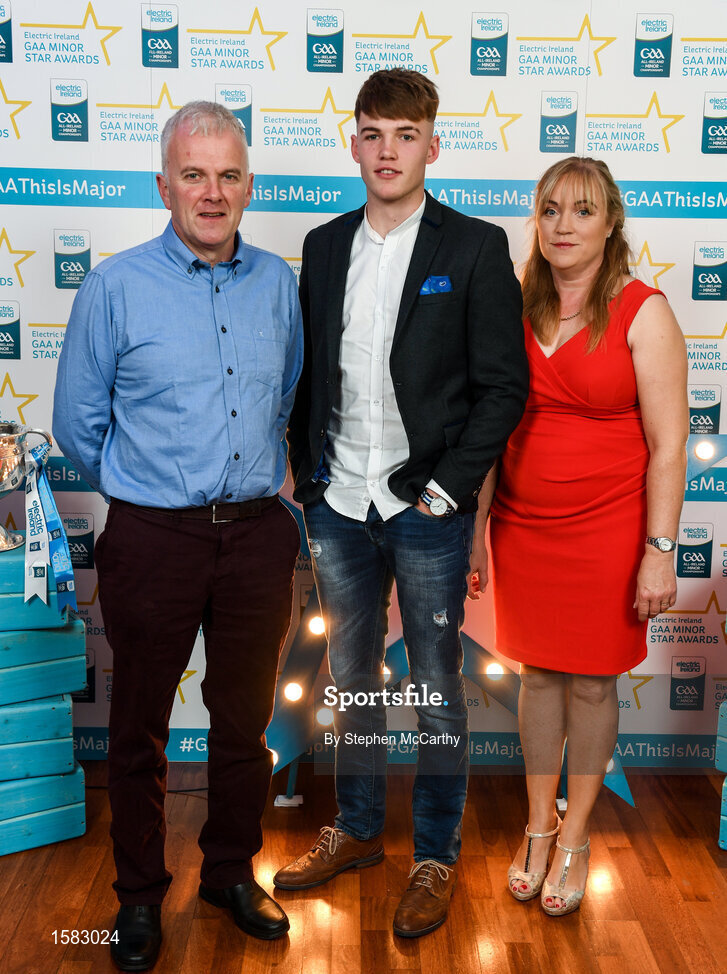 29 September 2018; Conor Whelan of CJ Kickhams, Tipperary, with his father Maurice and mother Ber on their arrival at the 2018 Electric Ireland Minor Star Awards. The Hurling/Football Team of the Year was selected by an expert panel of GAA legends including Ollie Canning, Sean Cavanagh, Michael Fennelly and Daniel Goulding. Sponsors of the GAA Minor Championships, Electric Ireland today recognised the talent and dedication of 15 Minor football players, and 15 Minor hurling players at the second annual Electric Ireland Minor Star Awards at Croke Park. #GAAThisIsMajor Photo by Stephen McCarthy/Sportsfile