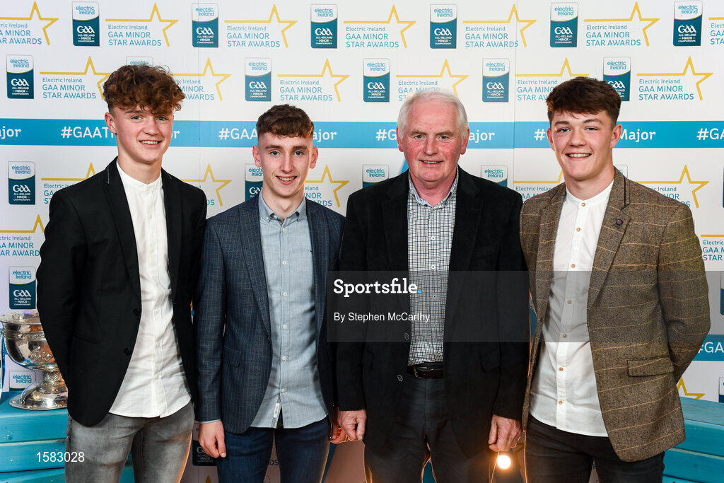 29 September 2018; Galway players, from left, Conor Raftery of Northern Gaels, Matthew Cooley of Corofin, and Tony Gill of Corofin, and Frank Morris on their arrival at the 2018 Electric Ireland Minor Star Awards. The Hurling/Football Team of the Year was selected by an expert panel of GAA legends including Ollie Canning, Sean Cavanagh, Michael Fennelly and Daniel Goulding. Sponsors of the GAA Minor Championships, Electric Ireland today recognised the talent and dedication of 15 Minor football players, and 15 Minor hurling players at the second annual Electric Ireland Minor Star Awards at Croke Park. #GAAThisIsMajor Photo by Stephen McCarthy/Sportsfile