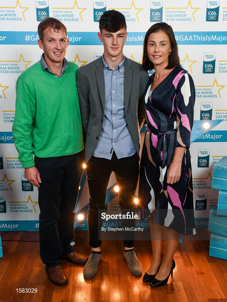 29 September 2018; Conor Kelly of O’Loughlin Gaels, Kilkenny, with parents Brian and Geraldine on their arrival at the 2018 Electric Ireland Minor Star Awards. The Hurling/Football Team of the Year was selected by an expert panel of GAA legends including Ollie Canning, Sean Cavanagh, Michael Fennelly and Daniel Goulding. Sponsors of the GAA Minor Championships, Electric Ireland today recognised the talent and dedication of 15 Minor football players, and 15 Minor hurling players at the second annual Electric Ireland Minor Star Awards at Croke Park. #GAAThisIsMajor Photo by Stephen McCarthy/Sportsfile