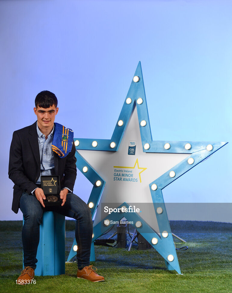 29 September 2018; Eoin Darcy of Tinahely, Wicklow, with his Minor Football Team of the Year Award at the 2018 Electric Ireland Minor Star Awards. The Hurling and Football Team of the Year was selected by an expert panel of GAA legends including Ollie Canning, Sean Cavanagh, Michael Fennelly and Daniel Goulding. Sponsors of the GAA Minor Championships, Electric Ireland today recognised the talent and dedication of 15 Minor football players, and 15 Minor hurling players at the second annual Electric Ireland Minor Star Awards at Croke Park. #GAAThisIsMajor Photo by Sam Barnes/Sportsfile