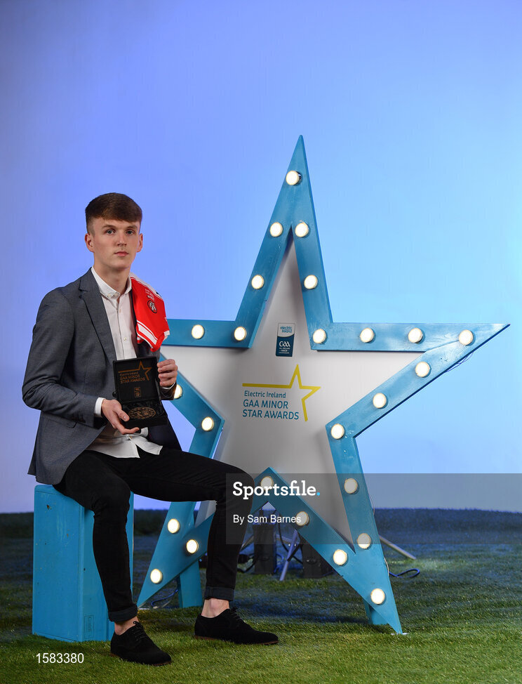 29 September 2018; Tiarnan Woods of Drumsurn, Derry, with his Minor Football Team of the Year Award at the 2018 Electric Ireland Minor Star Awards. The Hurling and Football Team of the Year was selected by an expert panel of GAA legends including Ollie Canning, Sean Cavanagh, Michael Fennelly and Daniel Goulding. Sponsors of the GAA Minor Championships, Electric Ireland today recognised the talent and dedication of 15 Minor football players, and 15 Minor hurling players at the second annual Electric Ireland Minor Star Awards at Croke Park. #GAAThisIsMajor Photo by Sam Barnes/Sportsfile