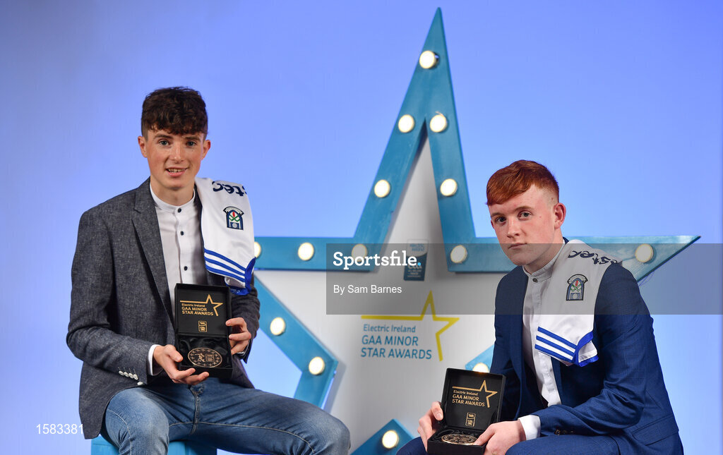 29 September 2018; Aaron Mulligan of Latton, Monaghan, left, and Ronan Grimes of Killanny, Monaghan with their Minor Football Team of the Year Awards at the 2018 Electric Ireland Minor Star Awards. The Hurling and Football Team of the Year was selected by an expert panel of GAA legends including Ollie Canning, Sean Cavanagh, Michael Fennelly and Daniel Goulding. Sponsors of the GAA Minor Championships, Electric Ireland today recognised the talent and dedication of 15 Minor football players, and 15 Minor hurling players at the second annual Electric Ireland Minor Star Awards at Croke Park. #GAAThisIsMajor Photo by Sam Barnes/Sportsfile