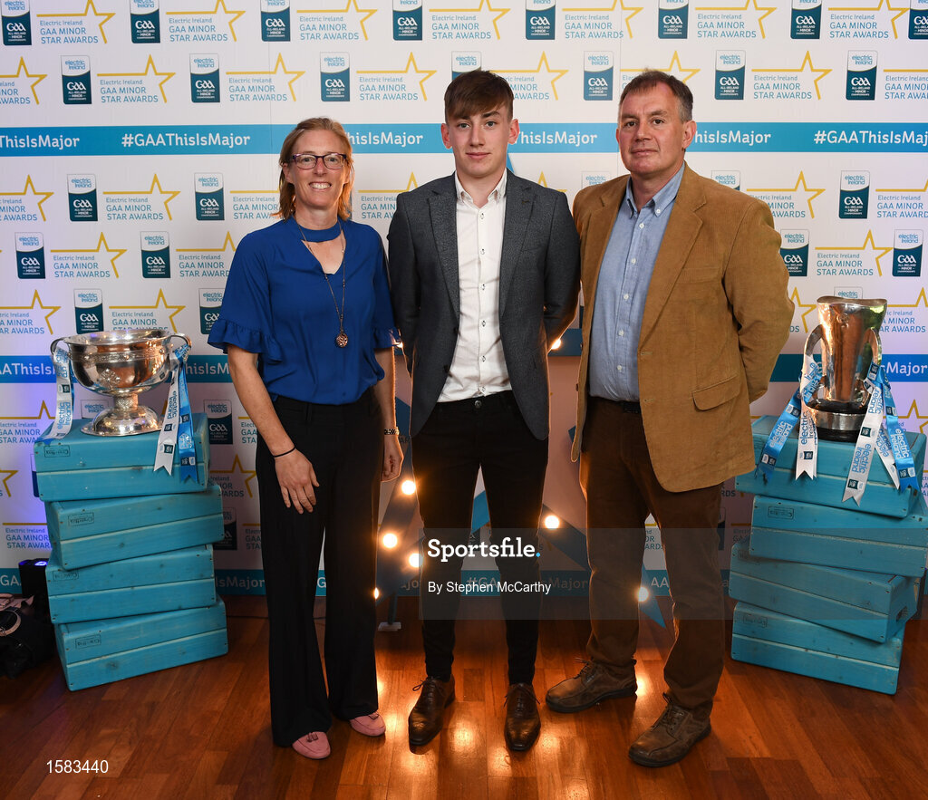 29 September 2018; Darragh Maher of St. Lachtain’s, Kilkenny, with parents Jill and Noel on their arrival at the 2018 Electric Ireland Minor Star Awards. The Hurling/Football Team of the Year was selected by an expert panel of GAA legends including Ollie Canning, Sean Cavanagh, Michael Fennelly and Daniel Goulding. Sponsors of the GAA Minor Championships, Electric Ireland today recognised the talent and dedication of 15 Minor football players, and 15 Minor hurling players at the second annual Electric Ireland Minor Star Awards at Croke Park. #GAAThisIsMajor Photo by Stephen McCarthy/Sportsfile