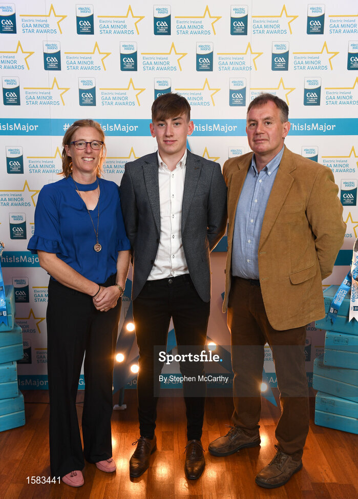 29 September 2018; Darragh Maher of St. Lachtain’s, Kilkenny, with parents Jill and Noel on their arrival at the 2018 Electric Ireland Minor Star Awards. The Hurling/Football Team of the Year was selected by an expert panel of GAA legends including Ollie Canning, Sean Cavanagh, Michael Fennelly and Daniel Goulding. Sponsors of the GAA Minor Championships, Electric Ireland today recognised the talent and dedication of 15 Minor football players, and 15 Minor hurling players at the second annual Electric Ireland Minor Star Awards at Croke Park. #GAAThisIsMajor Photo by Stephen McCarthy/Sportsfile
