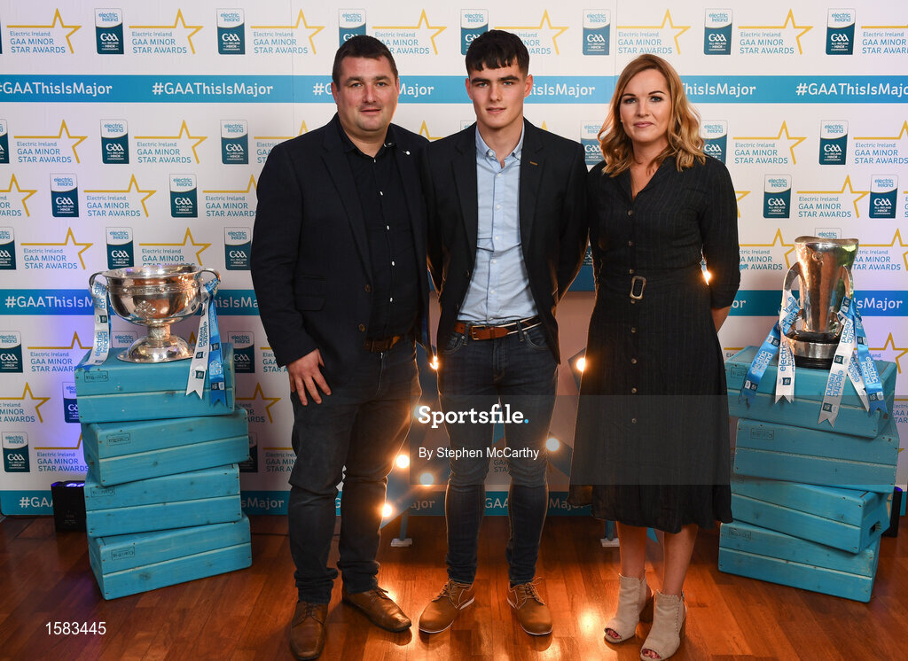 29 September 2018; Eoin Darcy of Tinahely, Wicklow, with Kevin Darcy, left, and Andreina O'Brien on their arrival at the 2018 Electric Ireland Minor Star Awards. The Hurling/Football Team of the Year was selected by an expert panel of GAA legends including Ollie Canning, Sean Cavanagh, Michael Fennelly and Daniel Goulding. Sponsors of the GAA Minor Championships, Electric Ireland today recognised the talent and dedication of 15 Minor football players, and 15 Minor hurling players at the second annual Electric Ireland Minor Star Awards at Croke Park. #GAAThisIsMajor Photo by Stephen McCarthy/Sportsfile