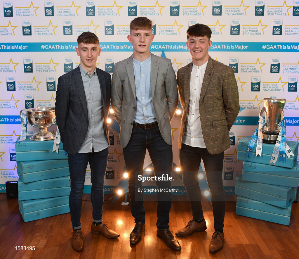 29 September 2018; Galway footballers, from left, Matthew Cooley of Corofin, Conor Raftery of Northern Gaels, and Tony Gill of Corofin, on their arrival at the 2018 Electric Ireland Minor Star Awards. The Hurling/Football Team of the Year was selected by an expert panel of GAA legends including Ollie Canning, Sean Cavanagh, Michael Fennelly and Daniel Goulding. Sponsors of the GAA Minor Championships, Electric Ireland today recognised the talent and dedication of 15 Minor football players, and 15 Minor hurling players at the second annual Electric Ireland Minor Star Awards at Croke Park. #GAAThisIsMajor Photo by Stephen McCarthy/Sportsfile