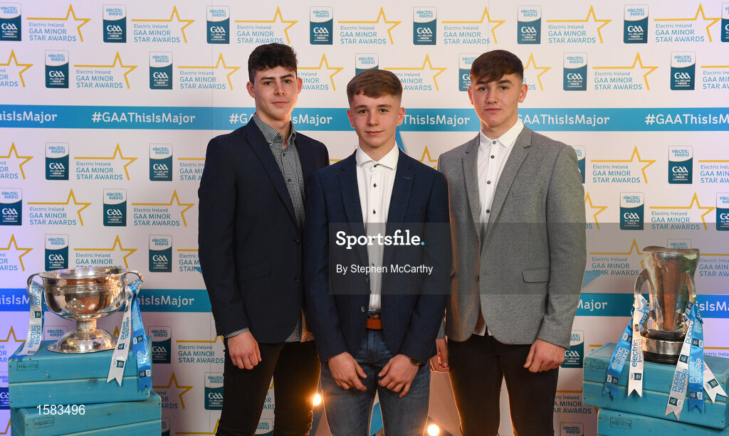 29 September 2018; Dublin hurlers, from left, Donal Leavy of Naomh Olaf, Mark Lavin of Lucan Sarsfields, and Luke Swan of Castleknock, on their arrival at the 2018 Electric Ireland Minor Star Awards. The Hurling/Football Team of the Year was selected by an expert panel of GAA legends including Ollie Canning, Sean Cavanagh, Michael Fennelly and Daniel Goulding. Sponsors of the GAA Minor Championships, Electric Ireland today recognised the talent and dedication of 15 Minor football players, and 15 Minor hurling players at the second annual Electric Ireland Minor Star Awards at Croke Park. #GAAThisIsMajor Photo by Stephen McCarthy/Sportsfile