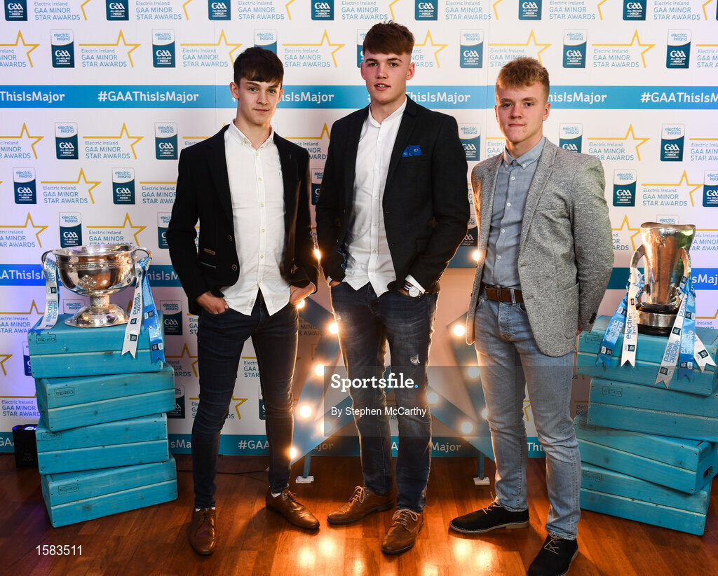 29 September 2018; Tipperary hurlers, from left, Seán Phelan of Nenagh Eire OG, Conor Whelan of CJ Kickhams, and James Devaney of Borris-Ileigh, on their arrival at the 2018 Electric Ireland Minor Star Awards. The Hurling/Football Team of the Year was selected by an expert panel of GAA legends including Ollie Canning, Sean Cavanagh, Michael Fennelly and Daniel Goulding. Sponsors of the GAA Minor Championships, Electric Ireland today recognised the talent and dedication of 15 Minor football players, and 15 Minor hurling players at the second annual Electric Ireland Minor Star Awards at Croke Park. #GAAThisIsMajor Photo by Stephen McCarthy/Sportsfile