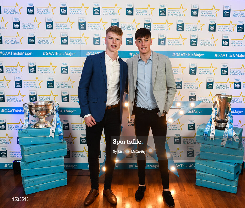 29 September 2018; Mathew Costello of Dunshaughlin, Meath, left, and Luke Mitchell of Dunshaughlin, Meath, on their arrival at the 2018 Electric Ireland Minor Star Awards. The Hurling/Football Team of the Year was selected by an expert panel of GAA legends including Ollie Canning, Sean Cavanagh, Michael Fennelly and Daniel Goulding. Sponsors of the GAA Minor Championships, Electric Ireland today recognised the talent and dedication of 15 Minor football players, and 15 Minor hurling players at the second annual Electric Ireland Minor Star Awards at Croke Park. #GAAThisIsMajor Photo by Stephen McCarthy/Sportsfile