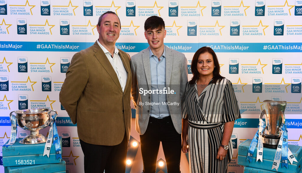 29 September 2018; Luke Mitchell of Dunshaughlin, Meath, with his parents Jim and Sandra on their arrival at the 2018 Electric Ireland Minor Star Awards. The Hurling/Football Team of the Year was selected by an expert panel of GAA legends including Ollie Canning, Sean Cavanagh, Michael Fennelly and Daniel Goulding. Sponsors of the GAA Minor Championships, Electric Ireland today recognised the talent and dedication of 15 Minor football players, and 15 Minor hurling players at the second annual Electric Ireland Minor Star Awards at Croke Park. #GAAThisIsMajor Photo by Stephen McCarthy/Sportsfile