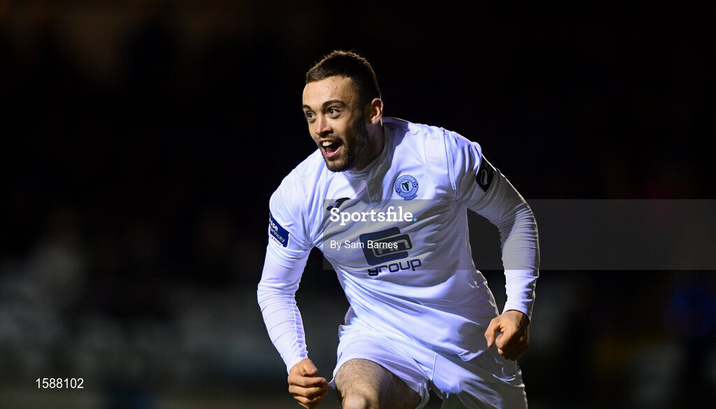 12 October 2018; Nathan Boyle of Finn Harps celebrates after scoring his sides first goal during the SSE Airtricity League Promotion / Relegation Play-off Series 1st leg match between Drogheda United and Finn Harps at United Park in Louth. Photo by Sam Barnes/Sportsfile