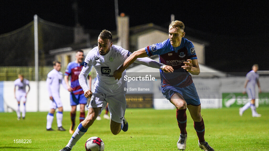 12 October 2018; Nathan Boyle of Finn Harps in action against Ciaran Kelly of Drogheda United during the SSE Airtricity League Promotion / Relegation Play-off Series 1st leg match between Drogheda United and Finn Harps at United Park in Louth. Photo by Sam Barnes/Sportsfile