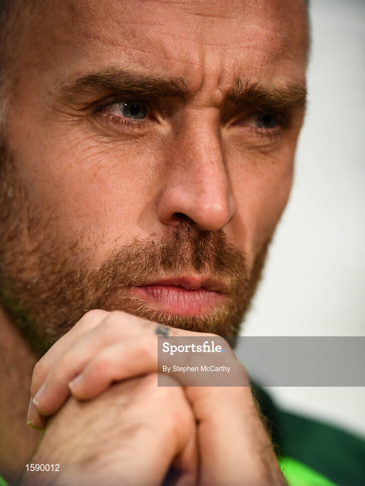 15 October 2018; Richard Keogh during a Republic of Ireland press conference at the FAI National Training Centre in Abbotstown, Dublin. Photo by Stephen McCarthy/Sportsfile